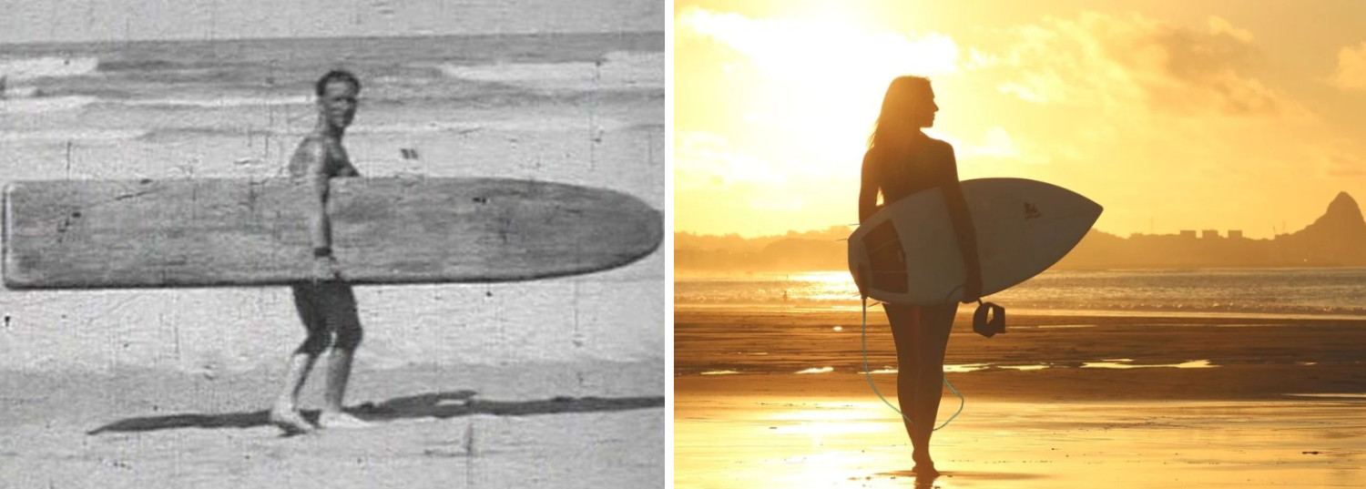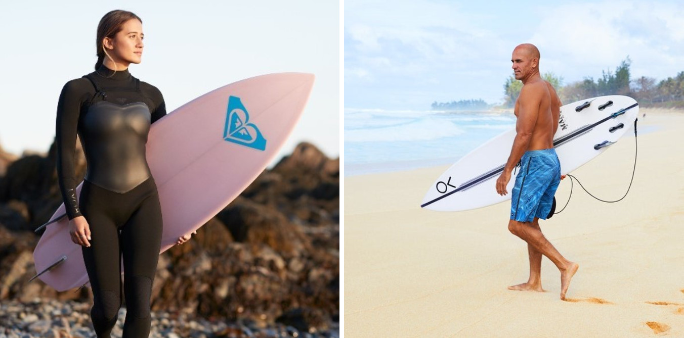 서핑보드는 서핑에서 가장 중요한 장비입니다. 옛날에는 나무로 만든 보드를 사용하다가 지금은 폴리우레탄 폼/폴리에틸렌 레진과 발포 폴리스틸렌 폼/에폭시 레진을 사용한 서프보드를 사용합니다. 나무와 비교하여 현재의 서핑보드는 무게가 1/10 수준으로 가볍고 부력이 뛰어나서 누구나 쉽게 서핑을 즐길 수 있습니다.