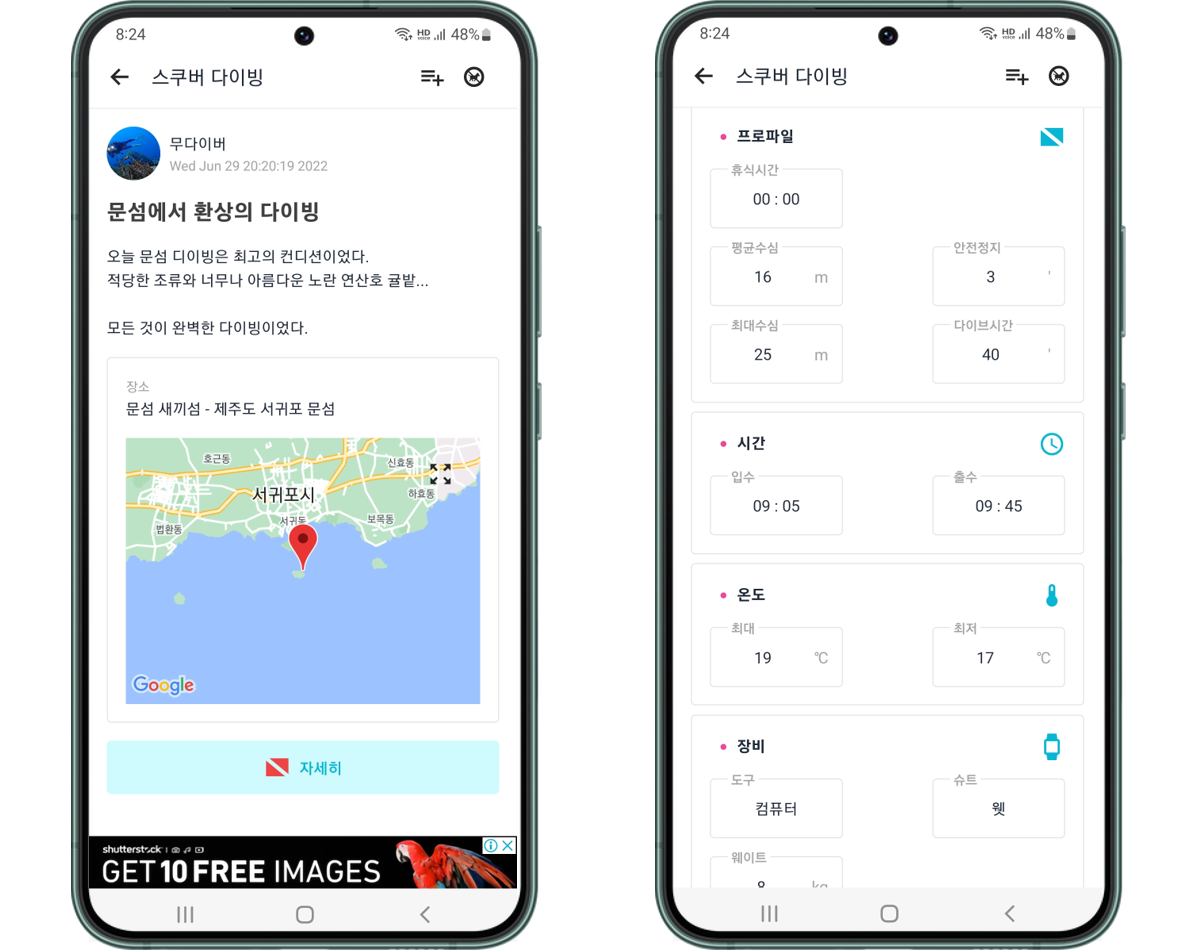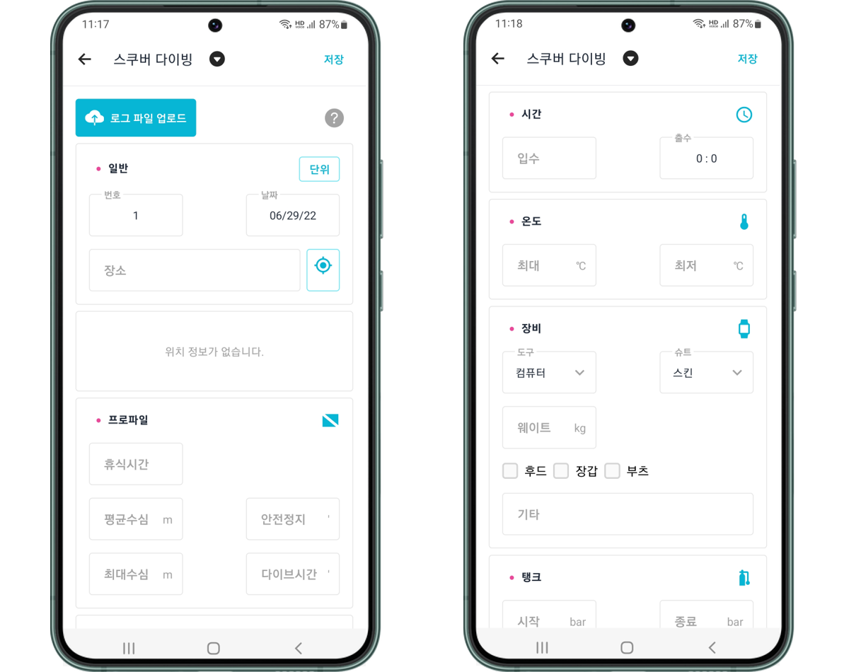 아래 화면이 나오면 스쿠버 다이빙 로그북을 작성할 수 있습니다.